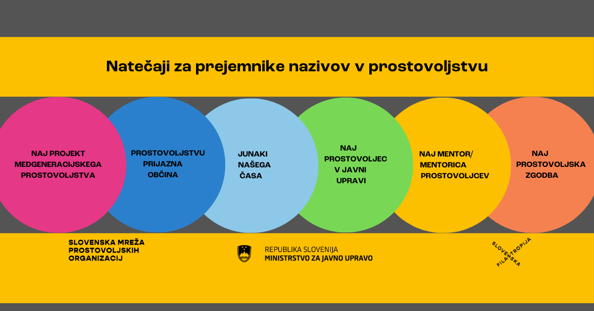 Slovenska filantropija, Združenje za promocijo prostovoljstva, koordinatorica Slovenske mreže prostovoljskih organizacij, razpisuje natečaje za naslednje nazive: